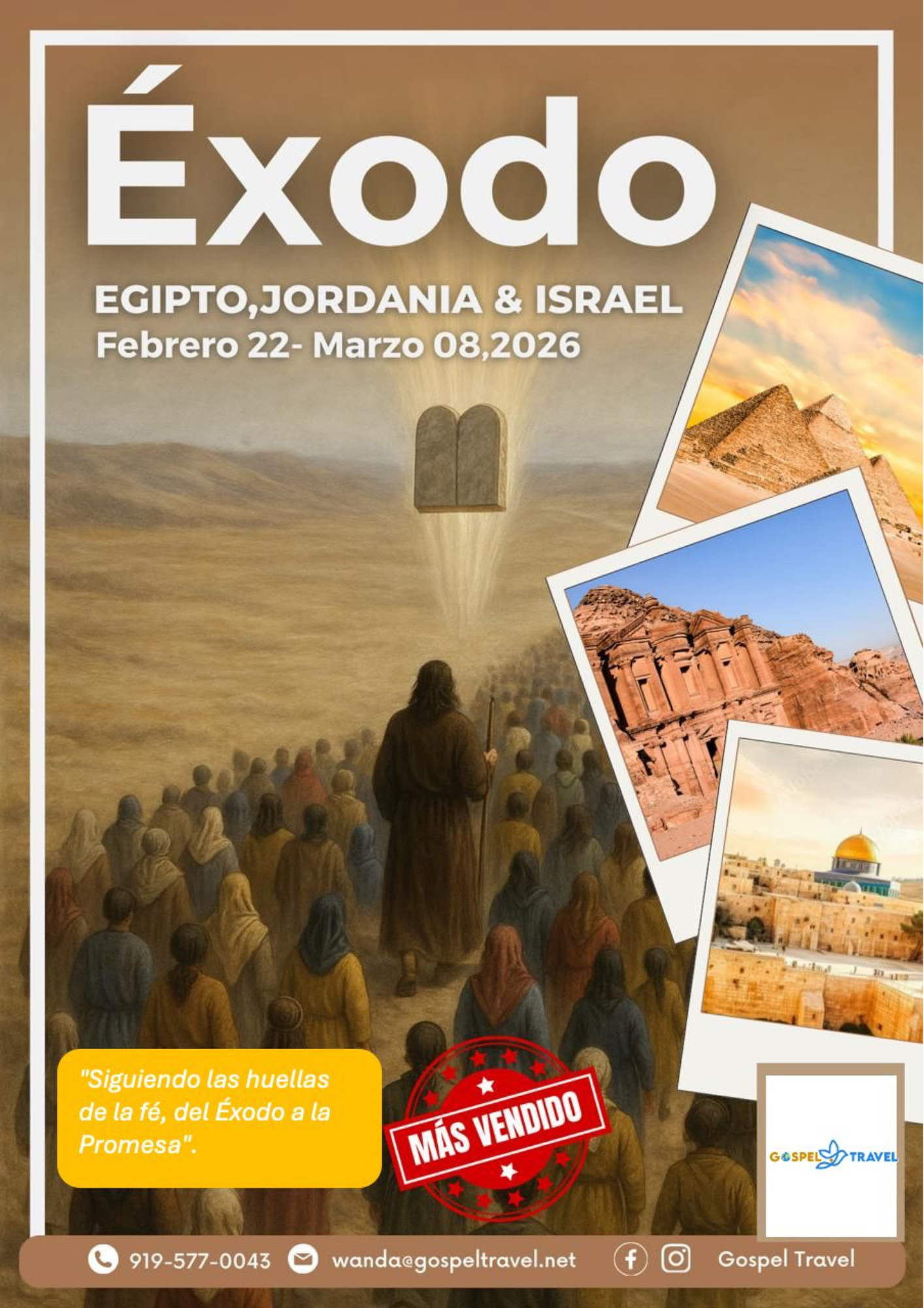 Comprendemos las incertidumbres comunes a las que se enfrentan los turistas y estamos aquí para abordarlas. Nuestros esfuerzos dedicados se centran en garantizar que tenga una experiencia verdaderamente única e inolvidable en Tierra Santa y durante los viajes religiosos. Su confianza es la acreditación más valiosa que Gospel Travel Inc. puede recibir. ¡Reserve su paquete de viaje hoy mismo!